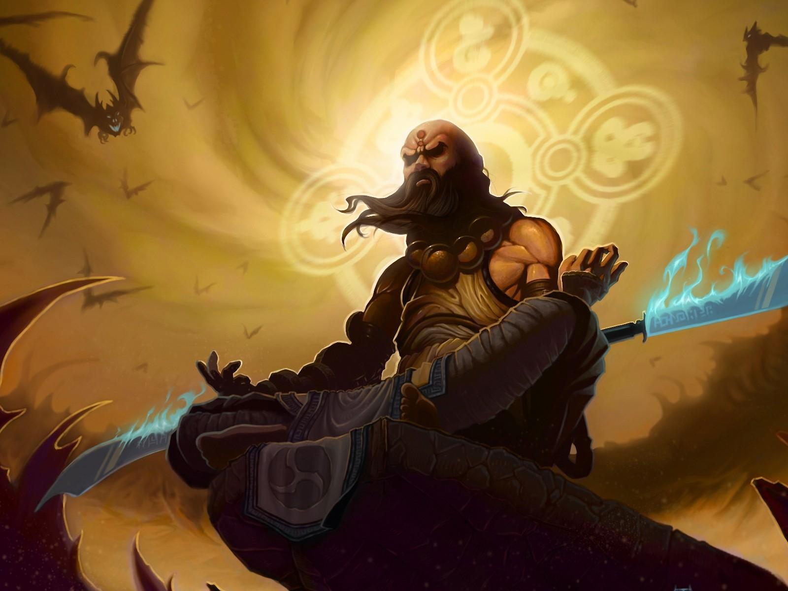 Wallpaper fan art, Diablo 3, shaolin, meditation, Cyberpunk