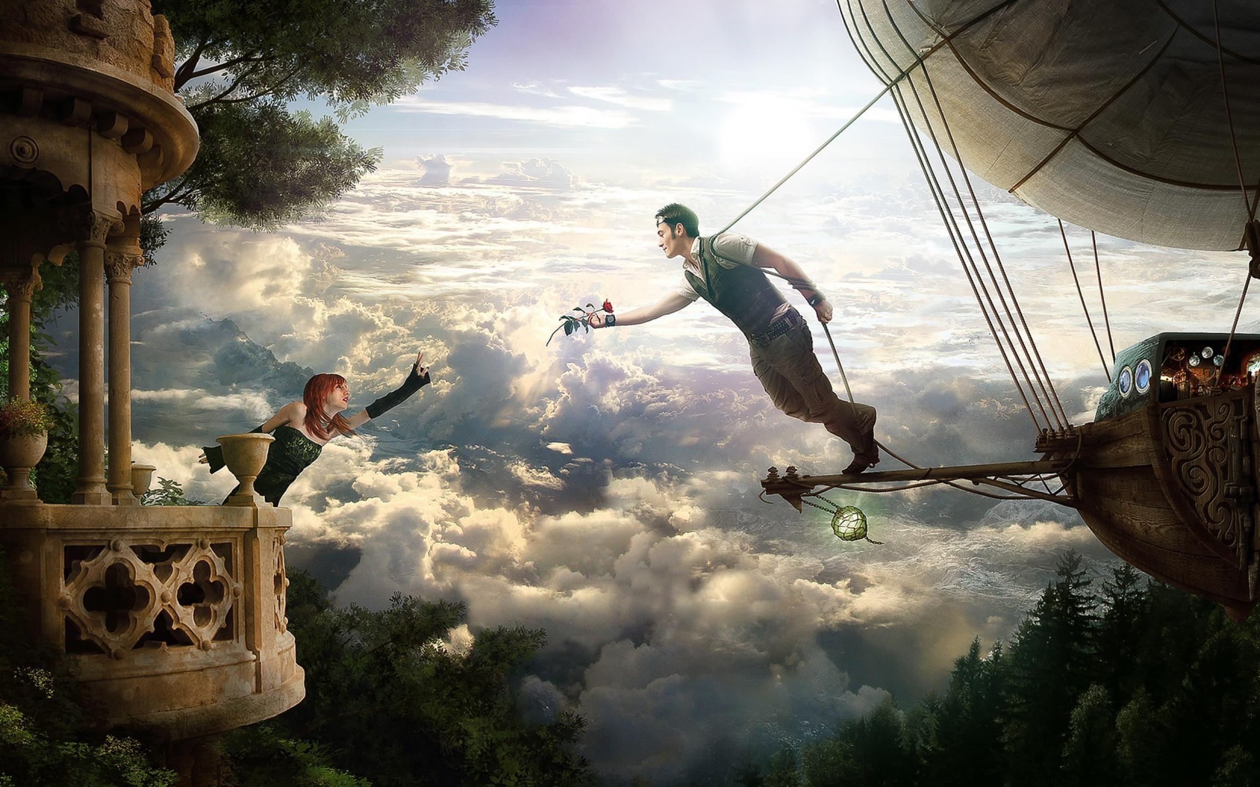 Wallpaper The airship flying in the island