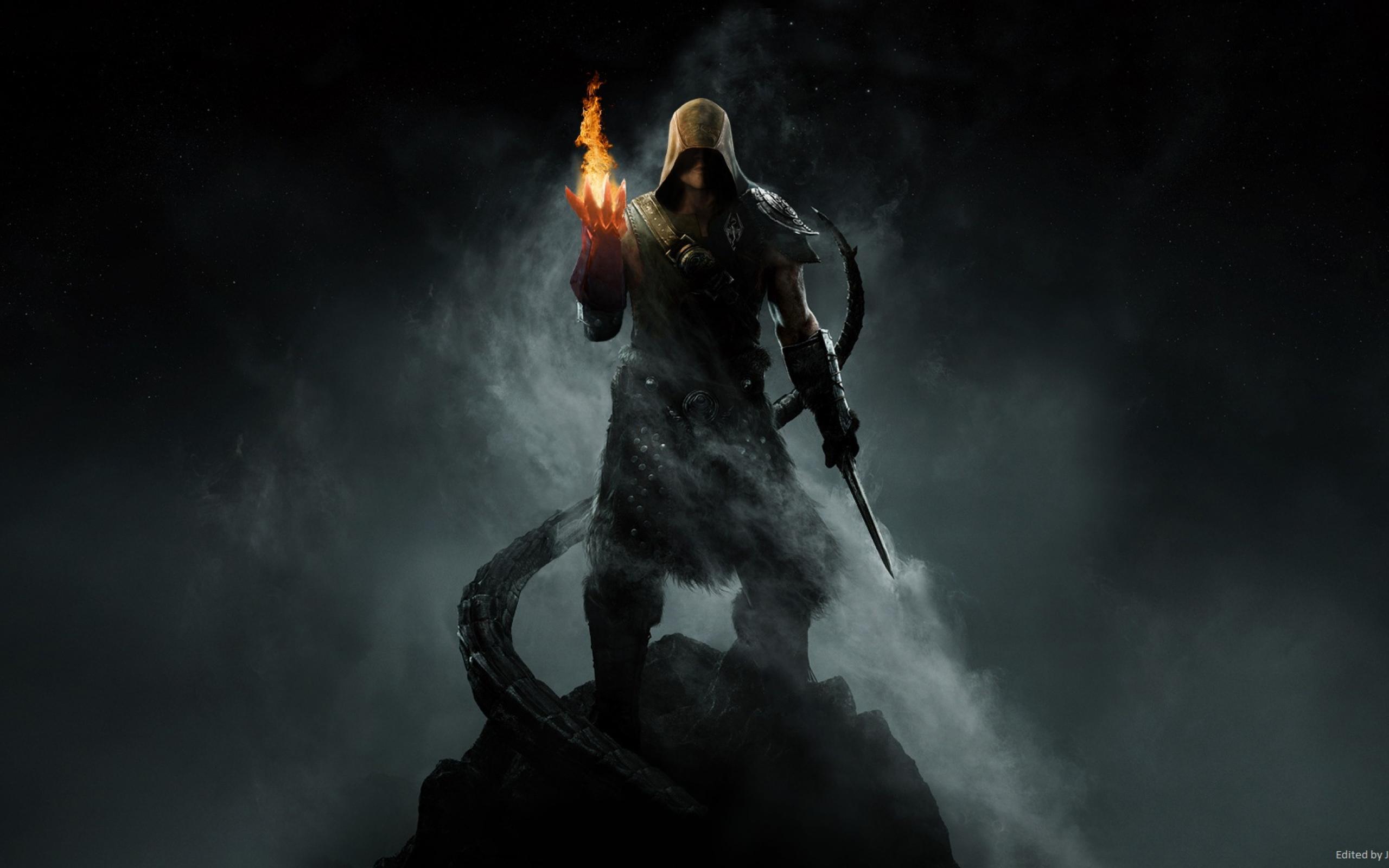 Wallpaper Fire, mage, Dragonborn, Warlock