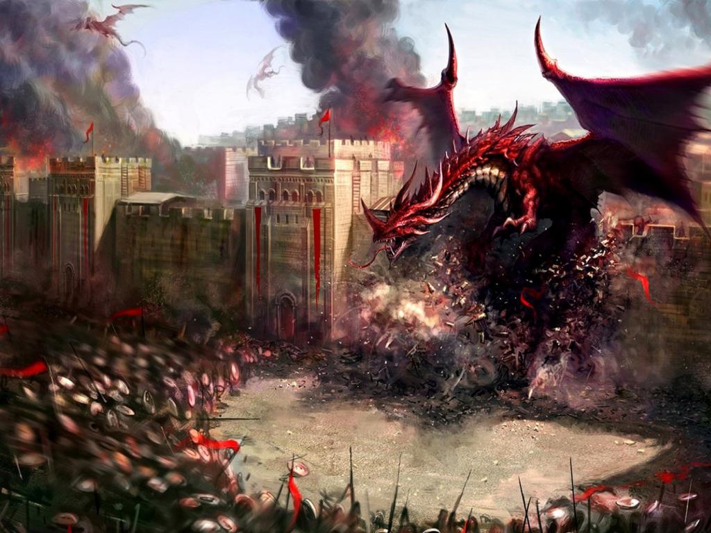 Wallpaper Smoke, Castle, Fire, Dragons