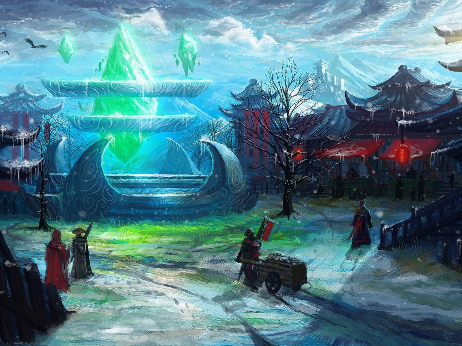 Wallpaper Sky, Snow, Village