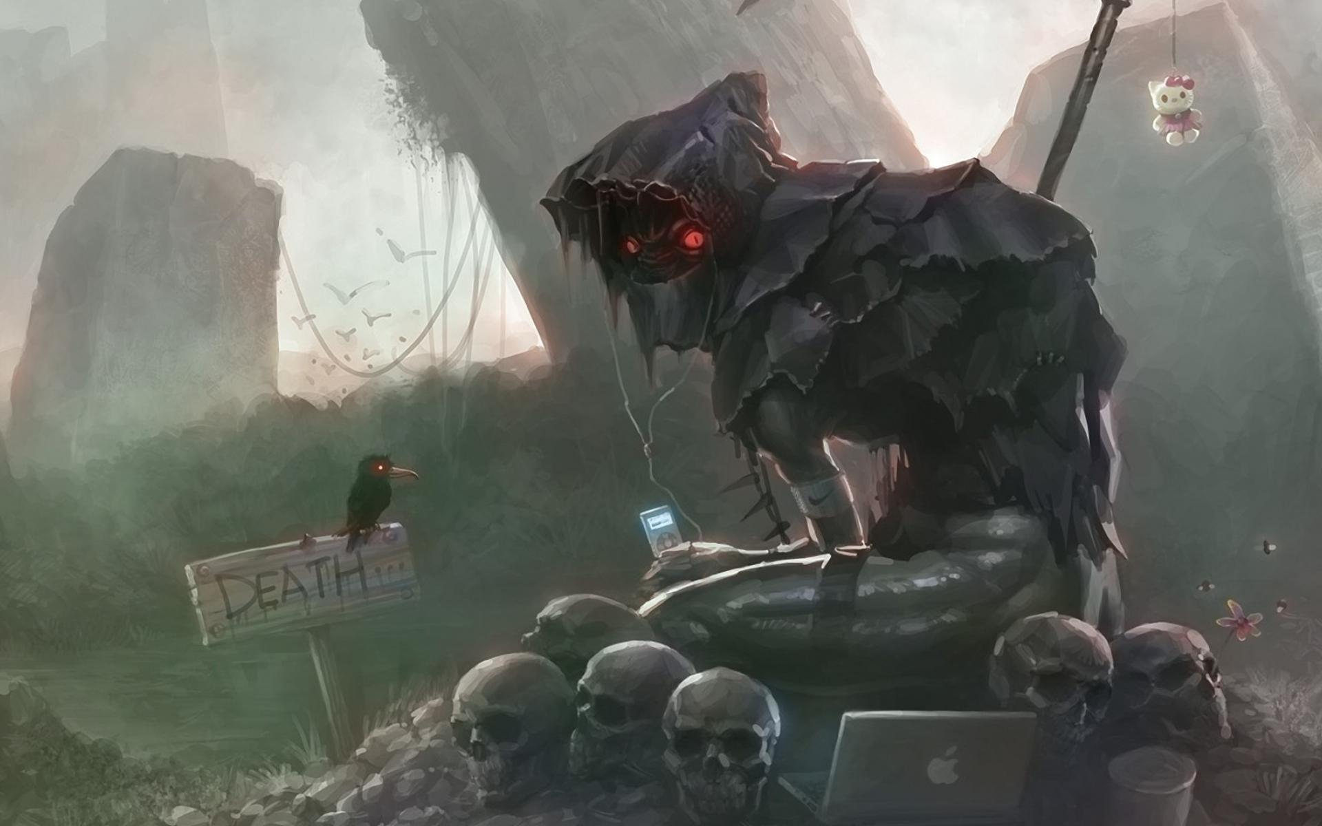 Wallpaper Skeleton, death, crow, Yorick, digital art