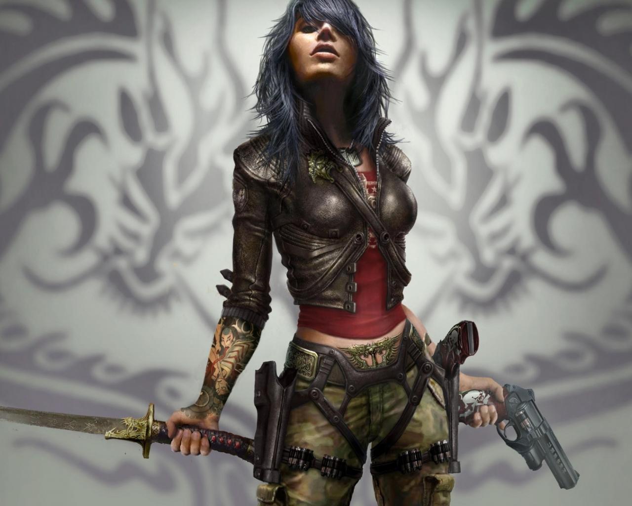 Wallpaper Handgun, Dragons, engraving, blade