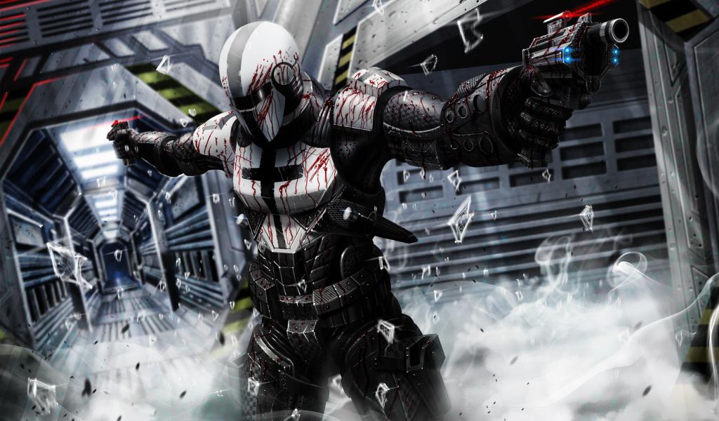 Wallpaper Smoke, Warrior, armour, space ship, Cyberpunk