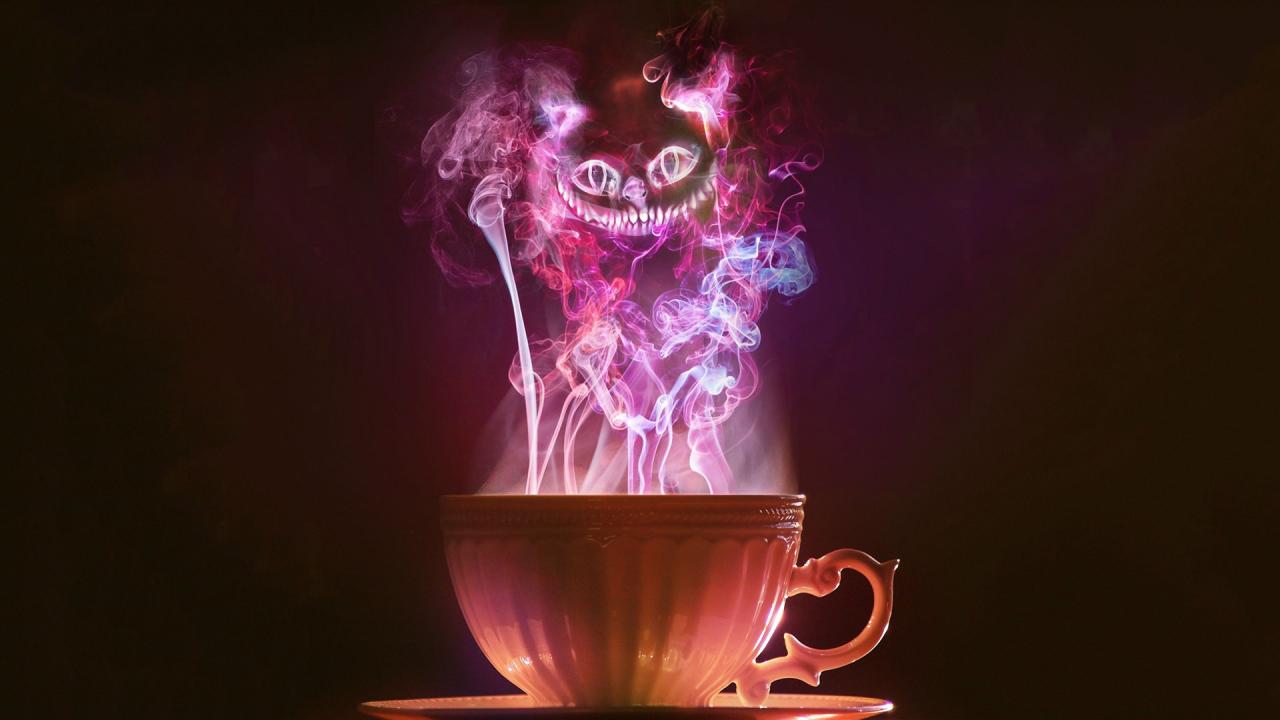 Wallpaper Smoke, purple, tea, Alice, cats, Cheshire Cat