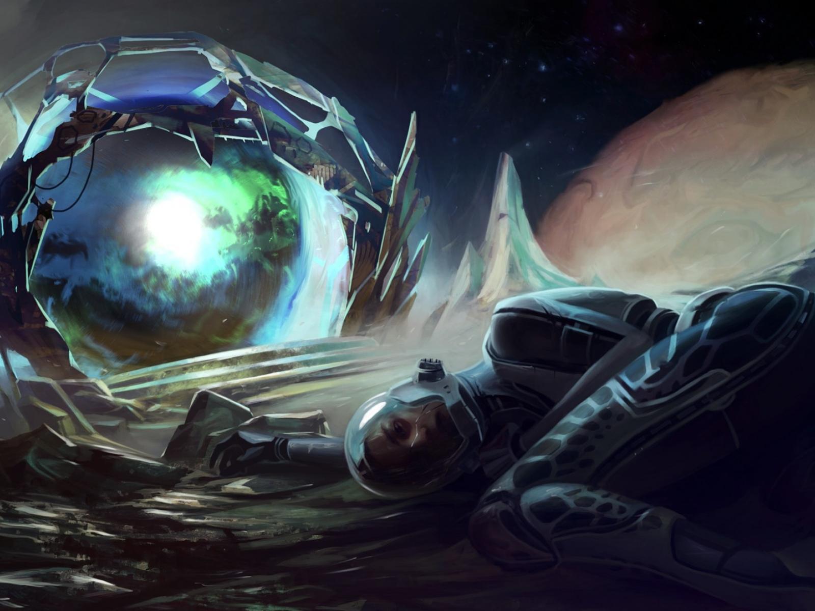 Wallpaper Astronaut, Space suit, Stars, Cyberpunk