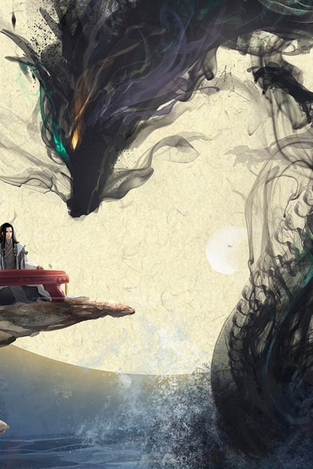 Wallpaper Water, Moon, Dragons