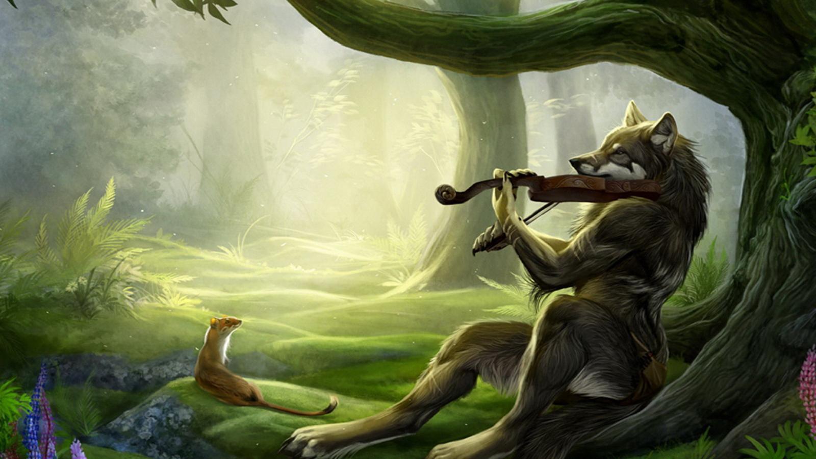 Wallpaper She-wolf playing a violin