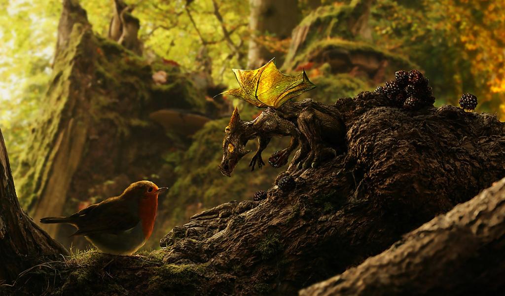 Wallpaper Bird and Dragon