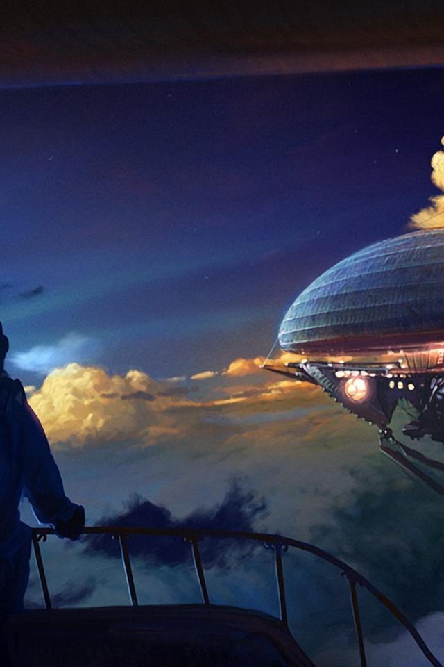 Wallpaper The pursuit of a flying ship