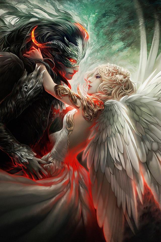Wallpaper Hugs angel and demon