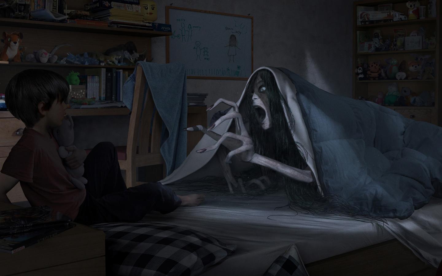 Wallpaper Monster scares the child