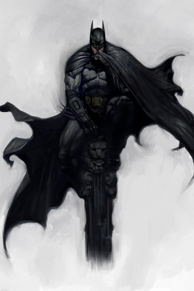Wallpaper Batman sits on a column