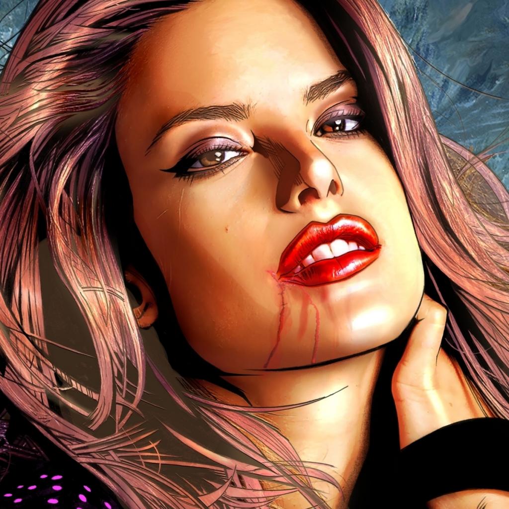 Wallpaper Bright lips girl vampire