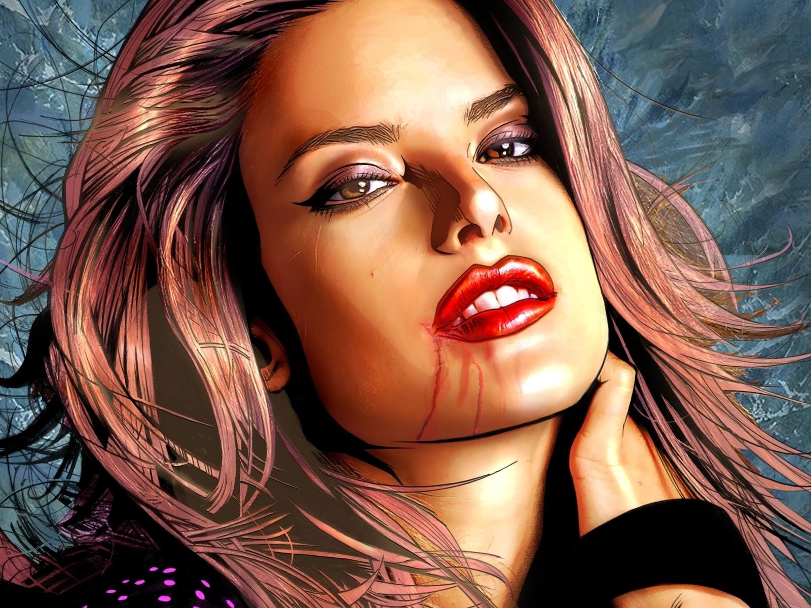 Wallpaper Bright lips girl vampire