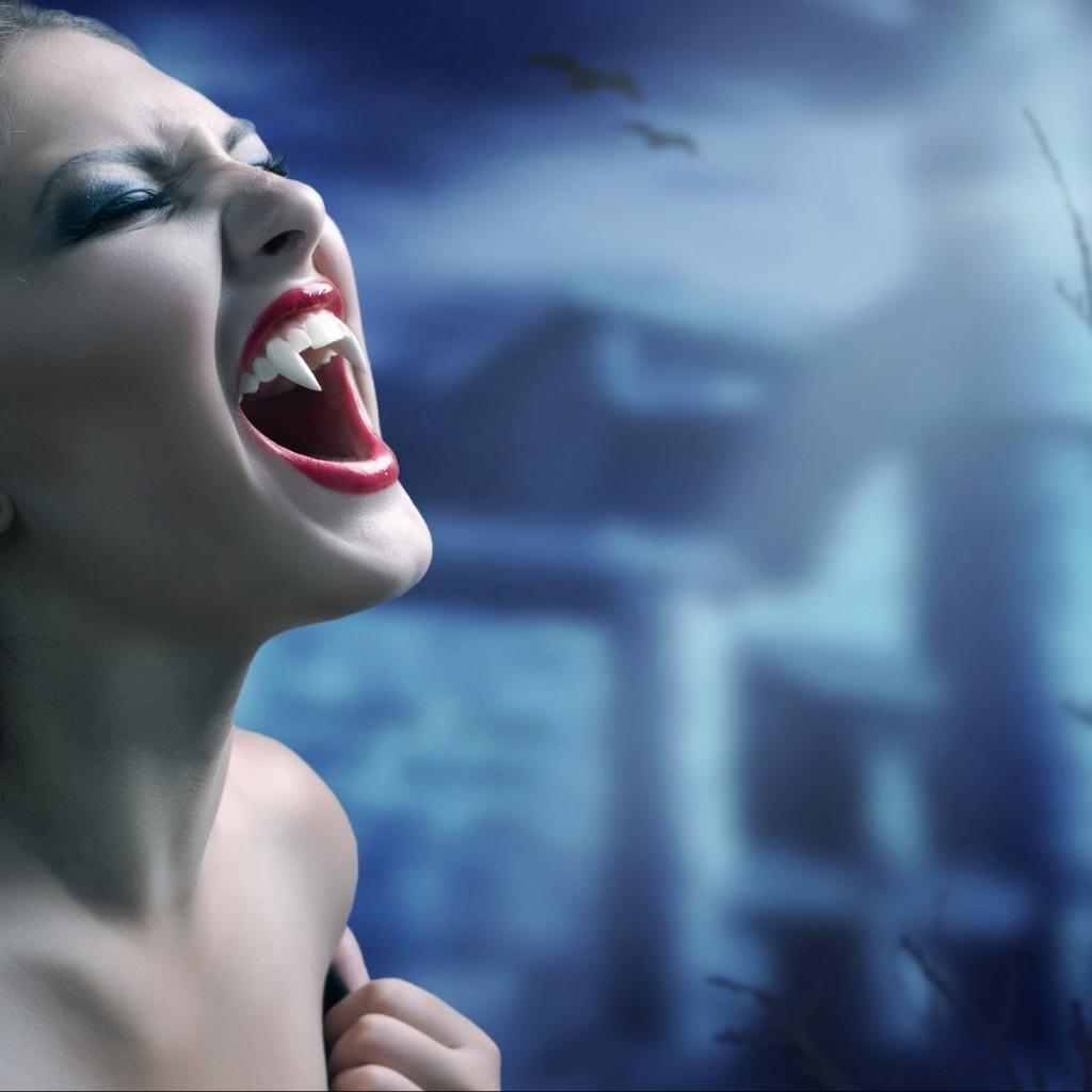 Wallpaper Powerful vampire fangs girl