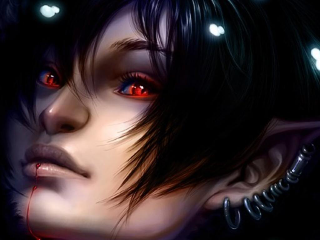Wallpaper Blood on the chin of the girl vampire