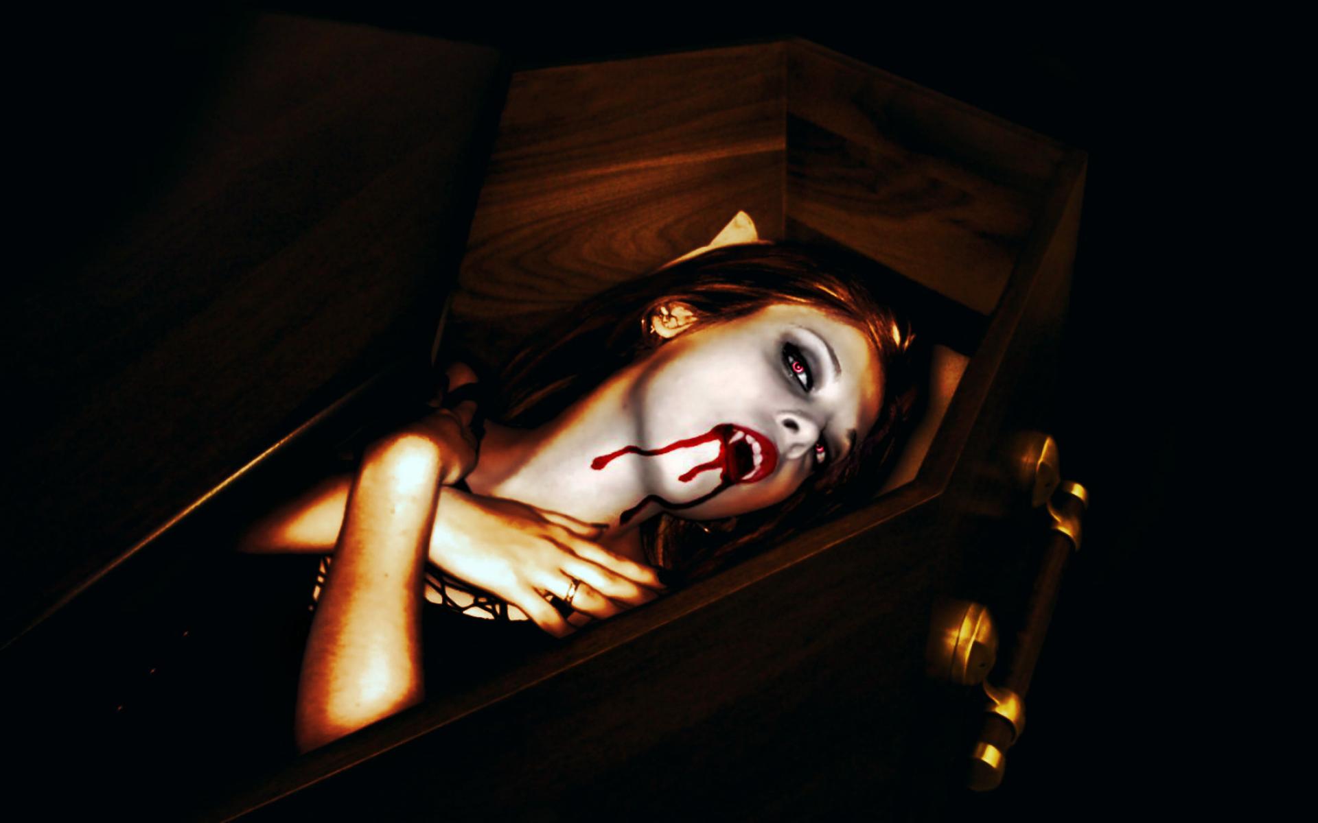 Wallpaper Girl vampire in the coffin