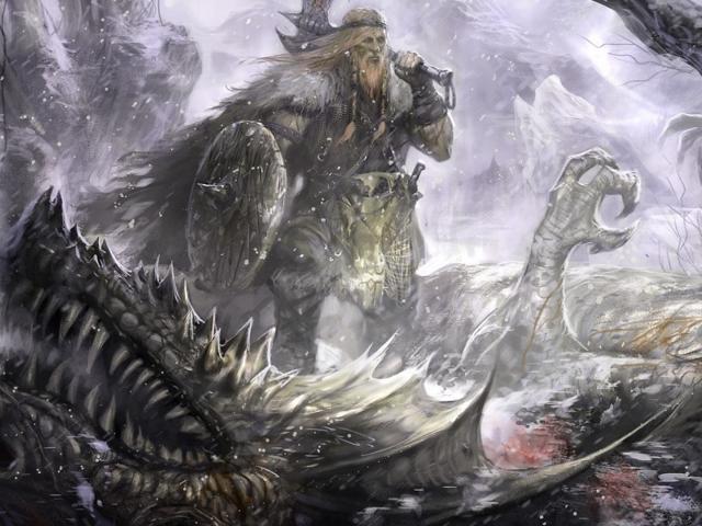 Wallpaper Viking on the defeated dragon