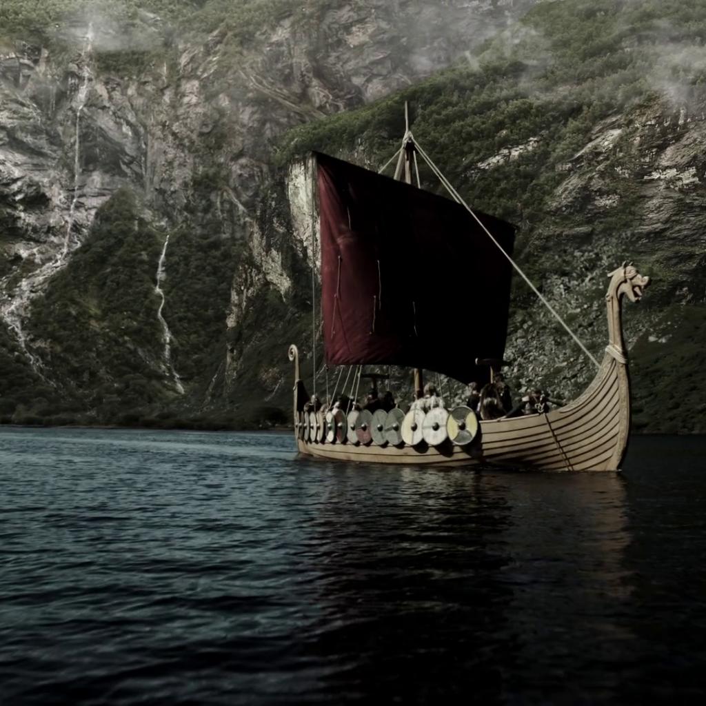Wallpaper Red sail of a Viking ship