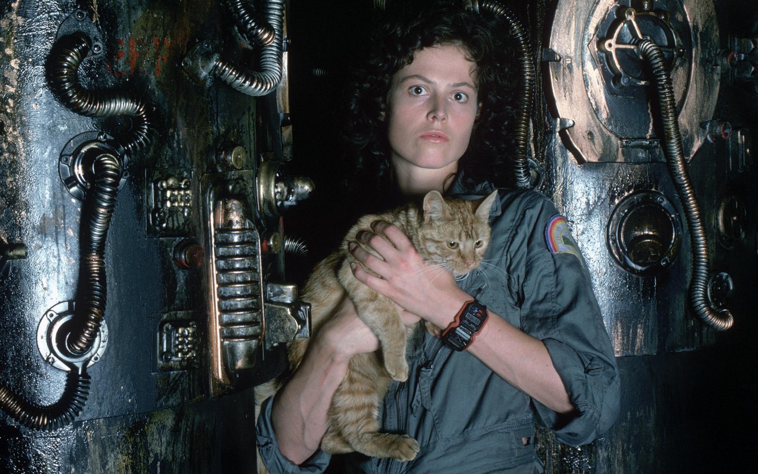 Wallpaper Girl with a cat in her arms, the film Alien
