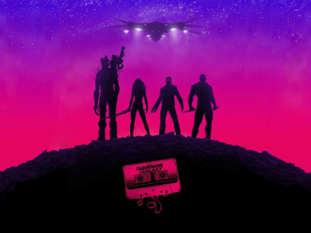 Wallpaper Silhouettes of the Guardians of the galaxy on a pink background