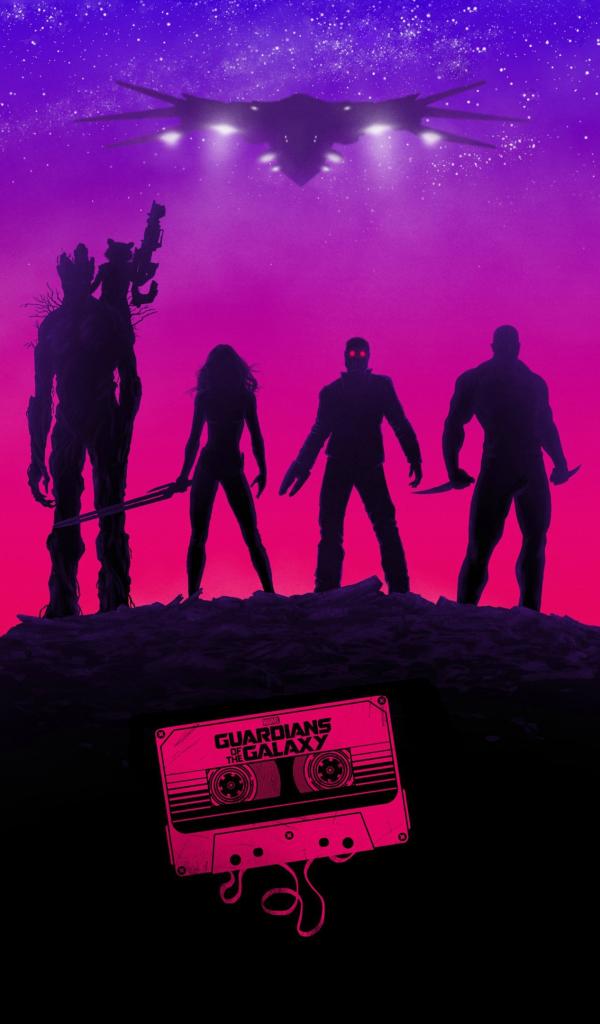 Wallpaper Silhouettes of the Guardians of the galaxy on a pink background