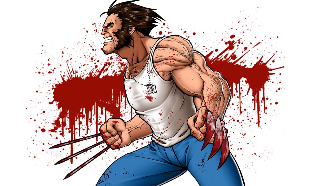 Wallpaper Wolverine against the backdrop of blood stains, art