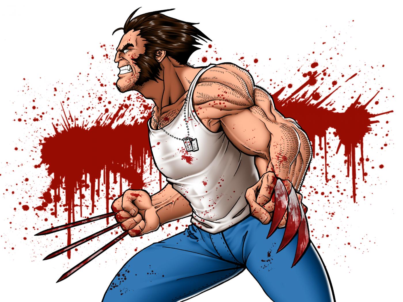 Wallpaper Wolverine against the backdrop of blood stains, art