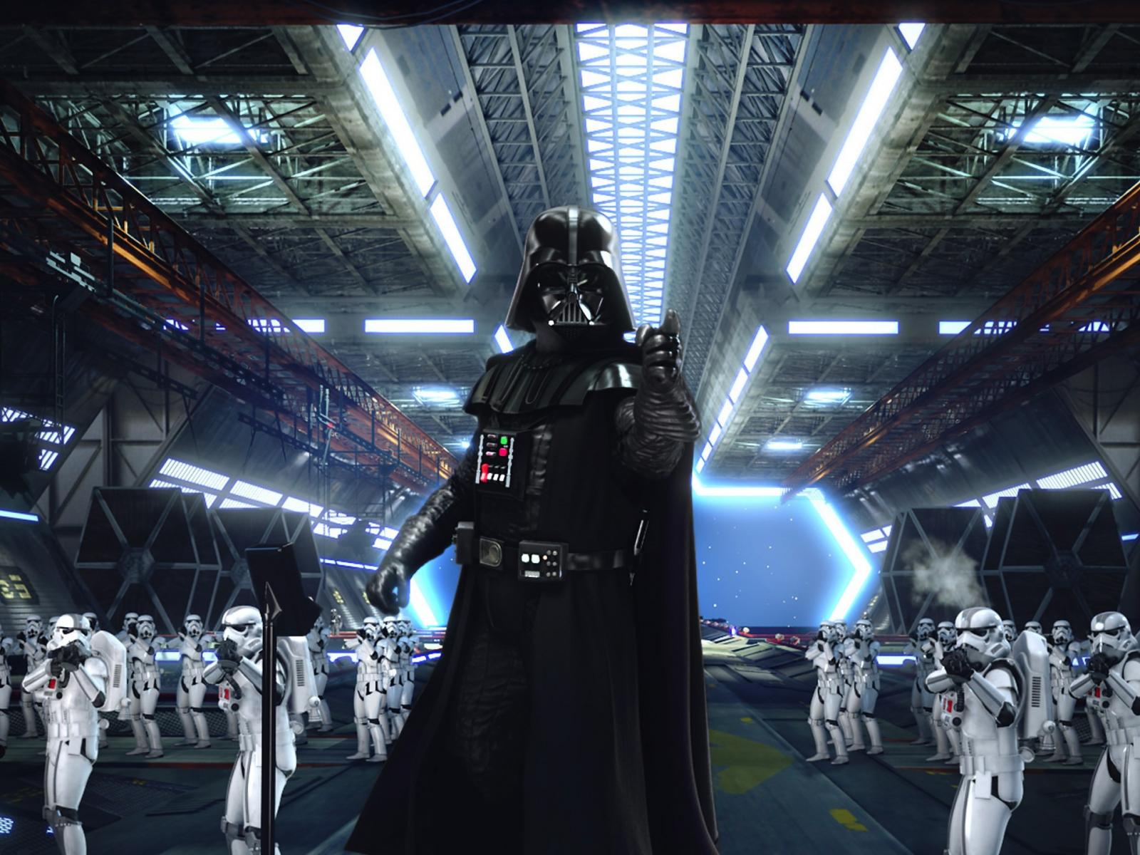 Wallpaper Darth Vader leads his army into battle stormtroopers