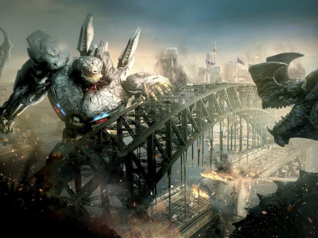 Wallpaper Fight off the bridge in the movie Pacific Rim