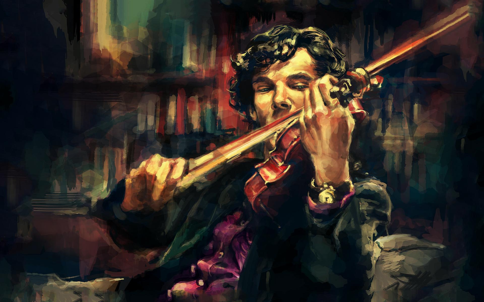 Wallpaper Sherlock plays the violin, art