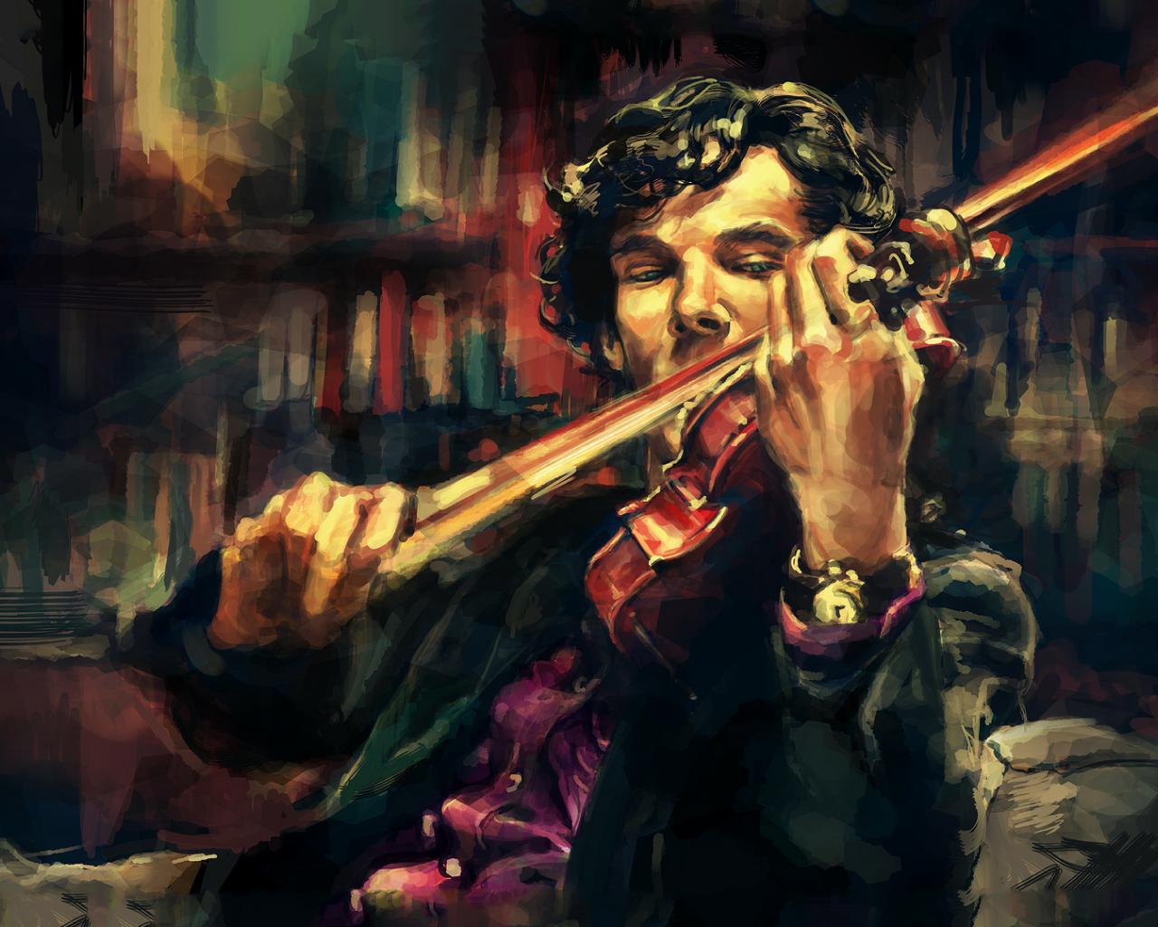 Wallpaper Sherlock plays the violin, art