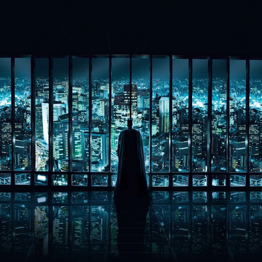 Wallpaper Batman at the window overlooking the metropolis