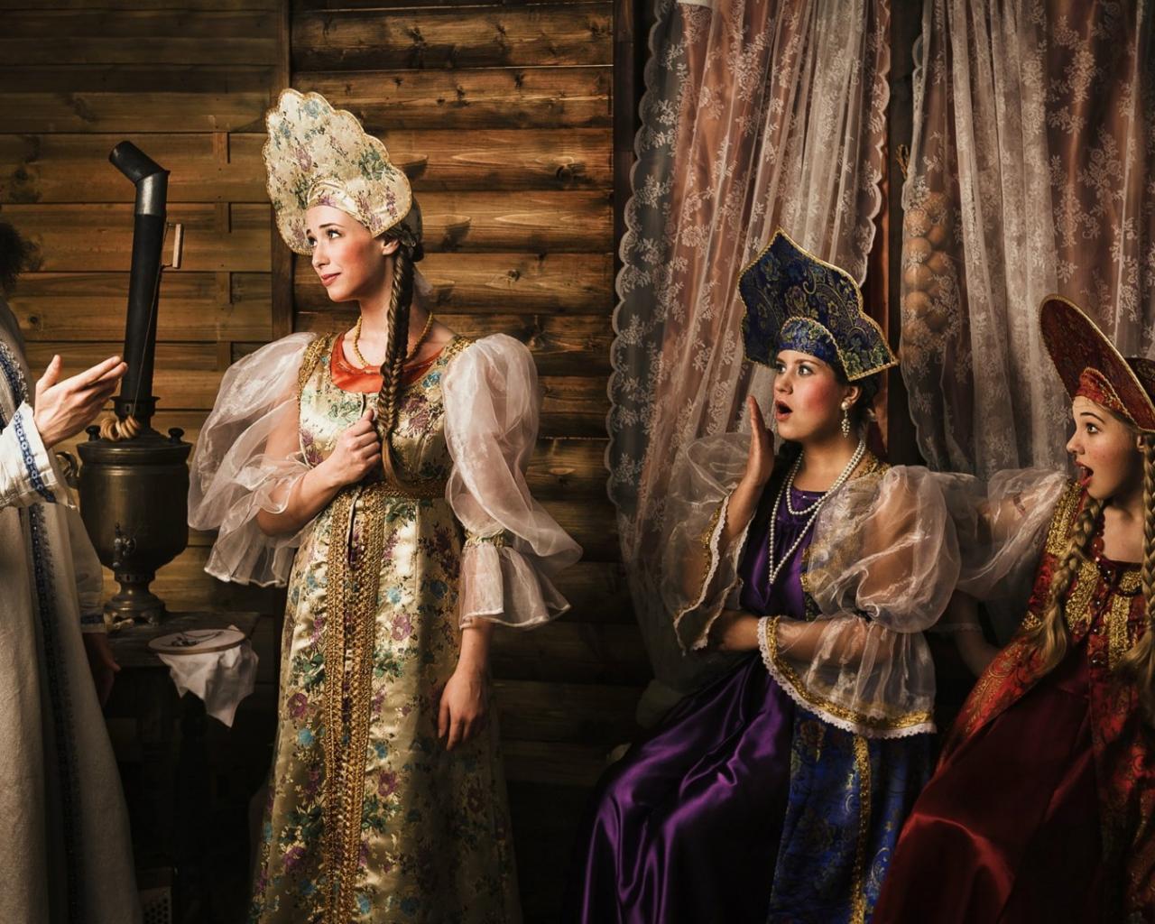 Wallpaper Three girls under the window