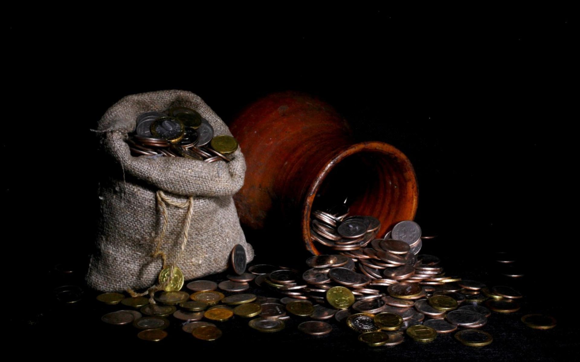 Wallpaper Coins in the bag and pot