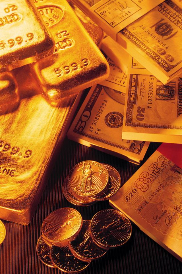 Wallpaper Gold and currency notes