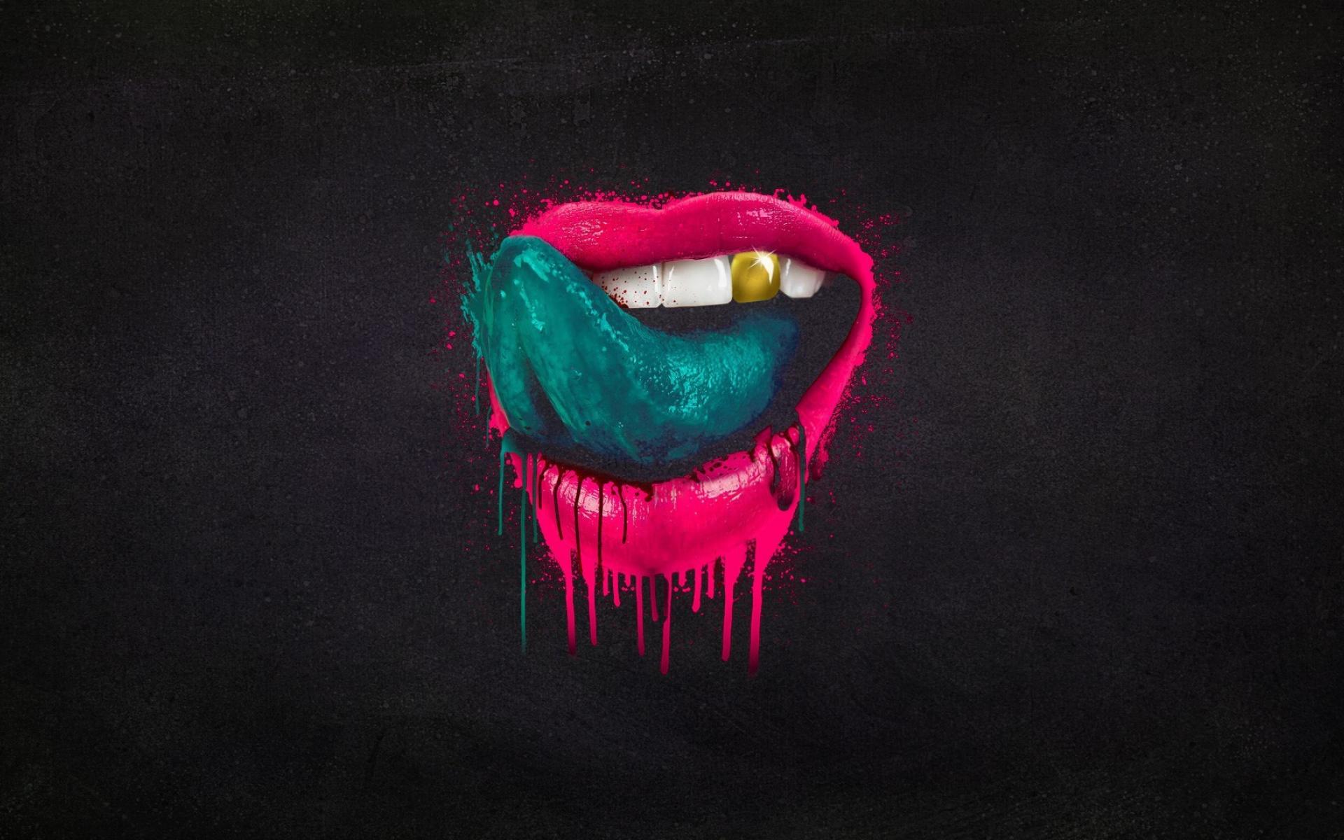 Wallpaper Blue tongue in pink lips