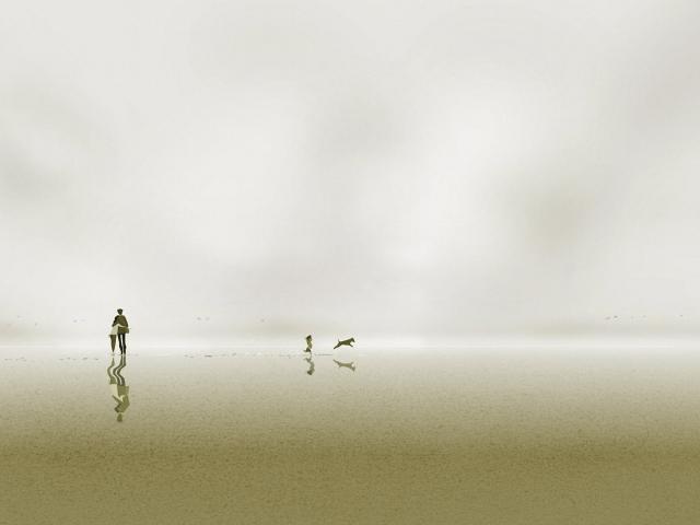 Wallpaper Family with a dog on a white background