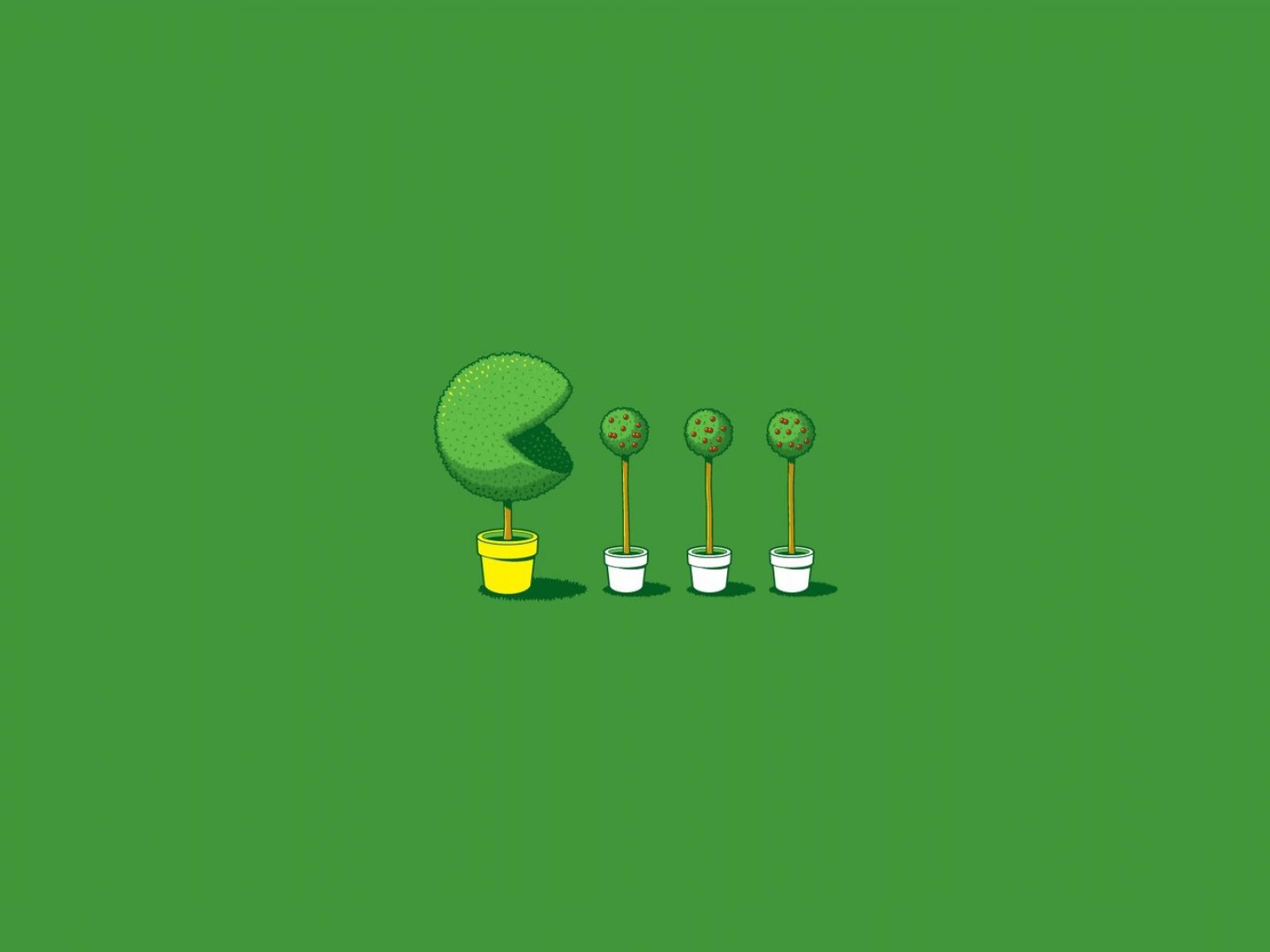 Wallpaper Pacman eats plants, green background