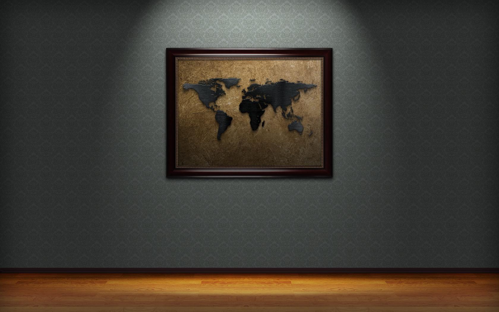 Wallpaper World map on the wall