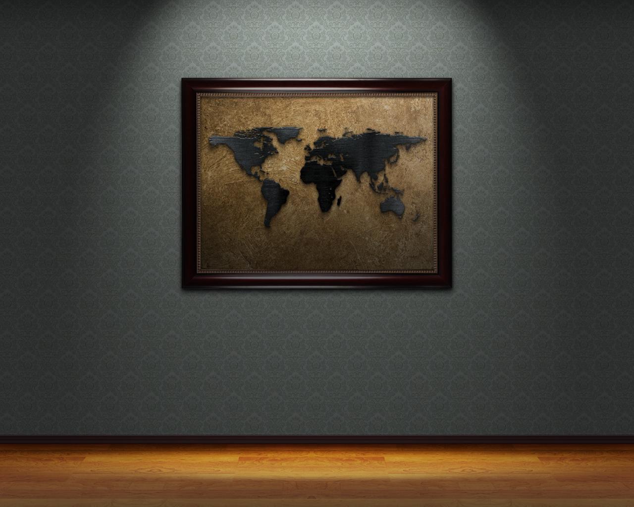 Wallpaper World map on the wall