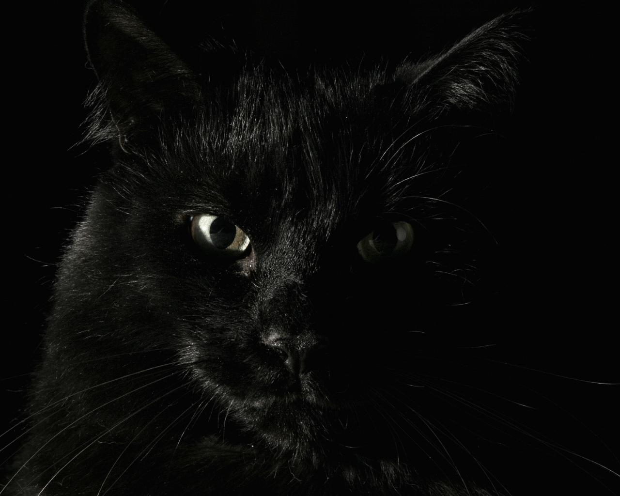 Wallpaper Black cat on a black background