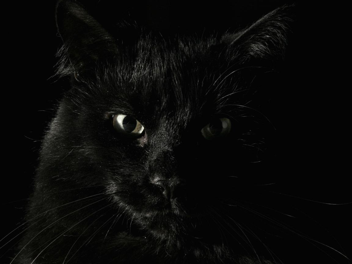 Wallpaper Black cat on a black background