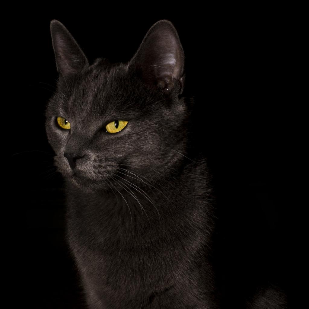 Wallpaper Yellow-eyed black cat on a black background