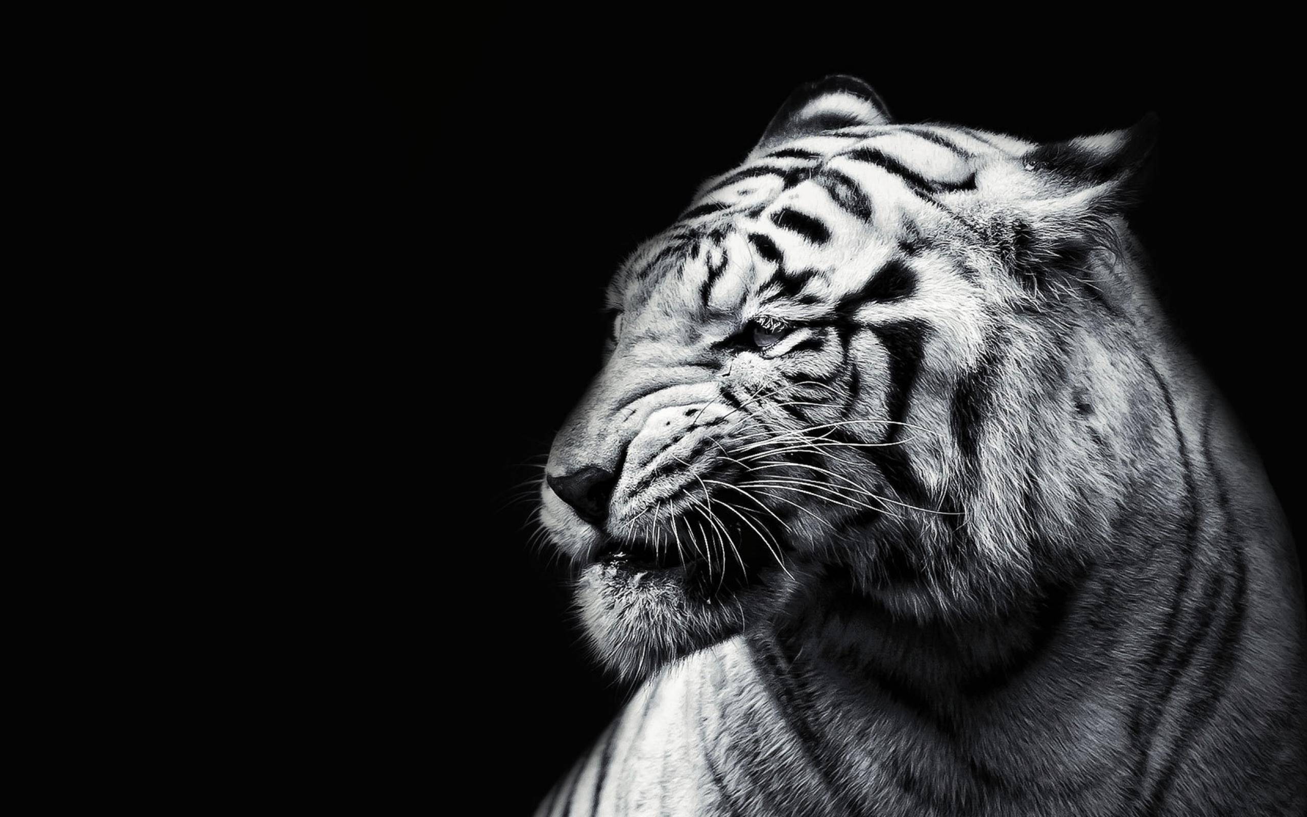 Wallpaper White tiger on a black background