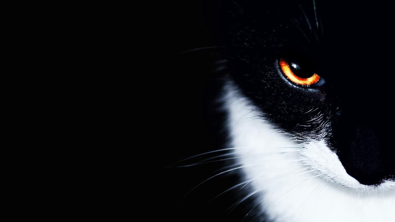 Wallpaper Asiatic black cat on a black background