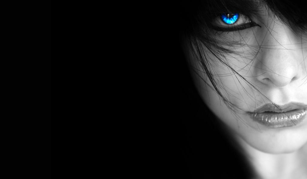 Wallpaper Black wallpaper with a blue-eyed girl