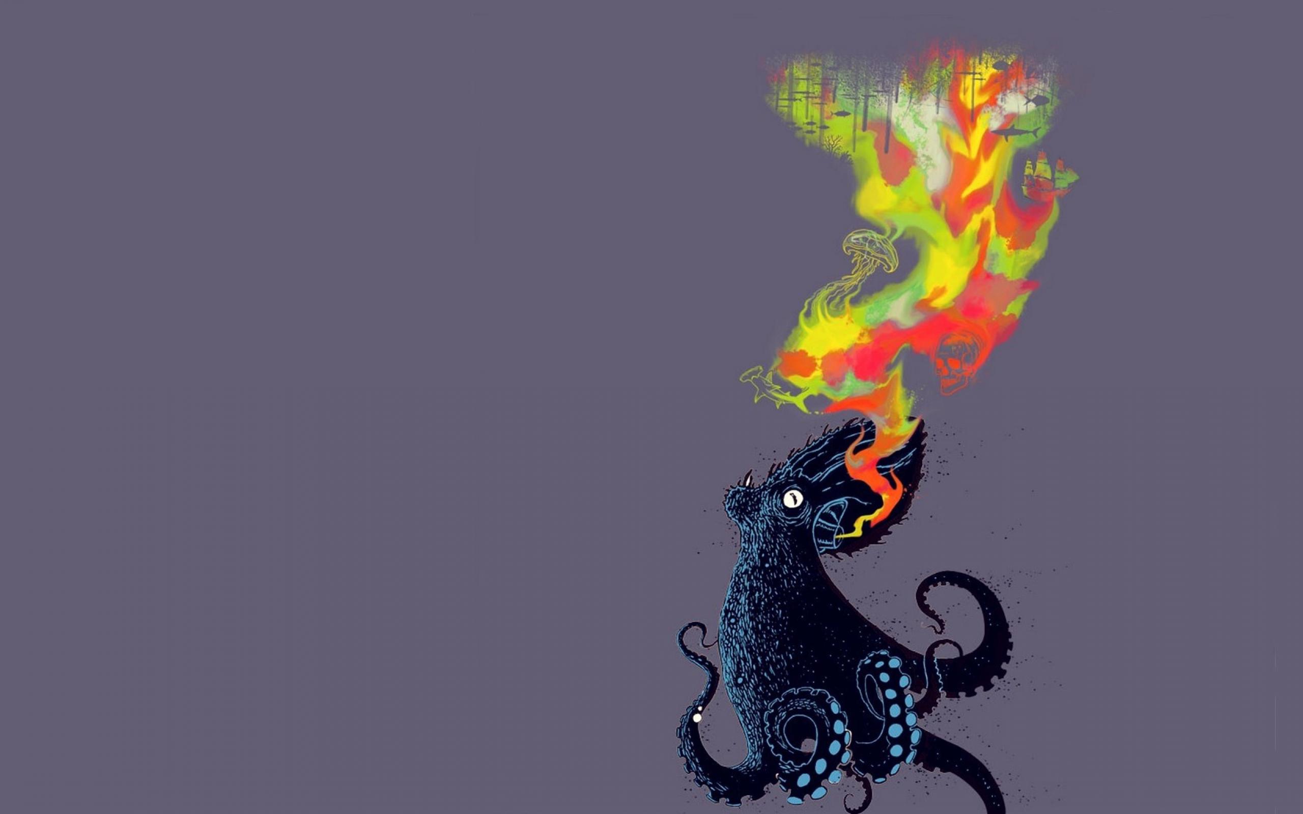 Wallpaper Fire-breathing octopus, gray background