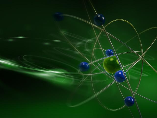 Wallpaper The model of an atom on a green background